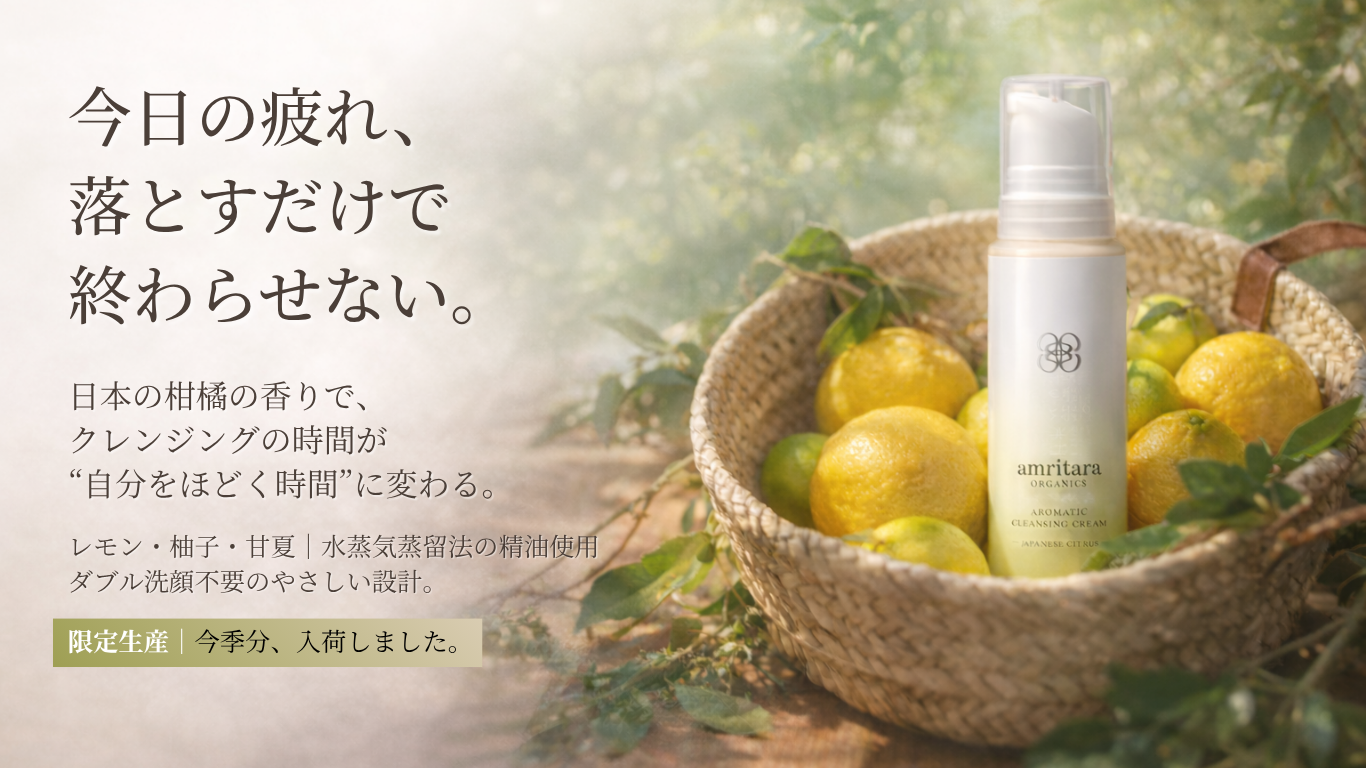 【2025年6月2日より価格改定になります】 国産オーガニック化粧品で「オーガニックに生きる」 amritara(アムリターラ)さんは代表の勝田さんの「いらないものは、いれない」「世の中にないものを生み出す」ことを信念に、自然の叡智が凝縮した化粧品や食品、サプリメントで、体の中からも外からも 真の健康美をもたらす商品開発を行なっています。野生(ワイルド)や農薬不使用の植物が持つ力「フィトエナジー」を活かし、独自の厳しい基準「アムリターラ化粧品10の約束」を守りながら、まるでお菓子を作るようにナチュラルな方法で作られています。「和精油のある暮らし」では、日本の植物を使用した化粧品の中でも、厳しい基準を信頼し、amritaraさんの化粧品を取り扱わせていただいています。 アムリターラが守る化粧品10の約束 美しい肌のために、本当に必要なスキンケアは何なのかをアムリターラは徹底的に追及しています。肌に必要なものと、そうでないものを自主基準で吟味し、必要がないものは、極力配合しない製品作りを心がけています。 植物原料*の80%以上は、自然栽培、野生ならびに栽培時の農薬・化学肥料や収穫後のポストハーベスト農薬を使わないものを用います。*植物オイル、植物エキス、精油など 原料の産地、栽培方法などの由来をできる限り公表します。 合成界面活性剤は、石油・植物などの由来を問わず用いません。 合成ポリマー、シリコーンオイル類は用いません。 合成防腐剤を用いず、植物がもつ自然な防腐性や、温度による保存管理、エアレス容器などを活用します。 石油由来成分や遺伝子組み換えしたと判別された原料は用いません。...