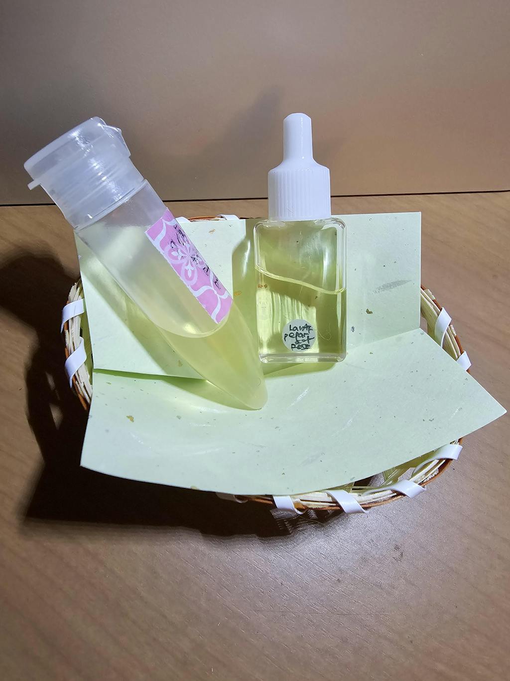 A. ドロドロのクリームでなく、キャリアオイルや化粧水などであれば入れられます。